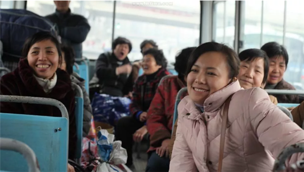 影片尾声,阜阳保姆们上了破旧的公交,准备回乡返程。一位阿姨从远处跑来,操着方言让车上的同乡捎一个用红布包着的盒子回老家。是骨灰盒。