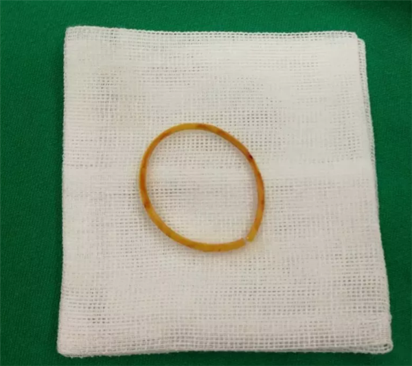 有了明确的诊断,骨科各位医生开始为乐乐手术。这个手术并不难,无影灯下,历经半小时就将“圆环”擒拿归案,把长在肉里的环形橡皮筋取了出来,彻底解决了乐乐的病痛。
